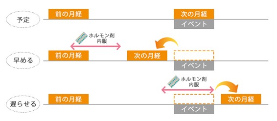 月経移動には、生理を早める方法と、遅らせる方法の2種類があります。